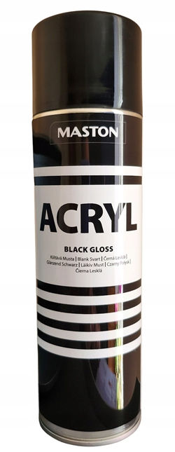 Maston Auto Acryl Black GLOSS 500 ml Szybkoschnąca farba w sprayu Maston Auto Acryl do malowania wewnętrznych i zewnętrznych części metalowych oraz twardych części plastikowych, takich jak felgi samochodowe. Matowa farba akrylowa do samochodów łączy w sobie bazę akrylową i pasty klasy profesjonalnej, które gwarantują jakość równą oryginalnej powierzchni lakieru. Wysokiej jakości matowa farba samochodowa Auto Acryl przeznaczona do malowania różnych powierzchni samochodowych gwarantuje szybki czas schnięcia, doskonały połysk i powierzchnię odporną na zużycie. Farby akrylowe w sprayu AutoACRYL mają bardzo dobre krycie, dzięki czemu można nimi pomalować znacznie więcej powierzchni niż tradycyjnymi farbami w sprayu na bazie syntetycznej lub nitro. Powierzchnia jest bardzo twarda i zapewnia doskonałą ochronę przed zużyciem i odpryskami kamieni.